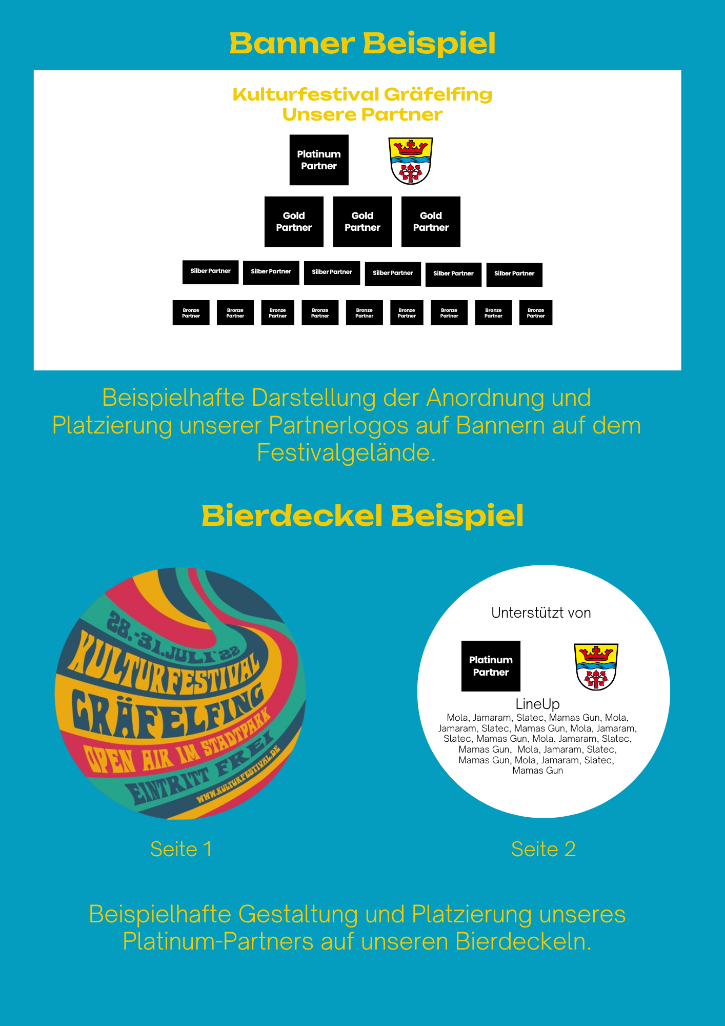 Mit dem Platinum-Paket sichern Sie sich die stärkste Präsenz beim Kulturfestival Gräfelfing und fördern zugleich eine kulturelle Veranstaltung mit bedeutendem regionalen Einfluss.